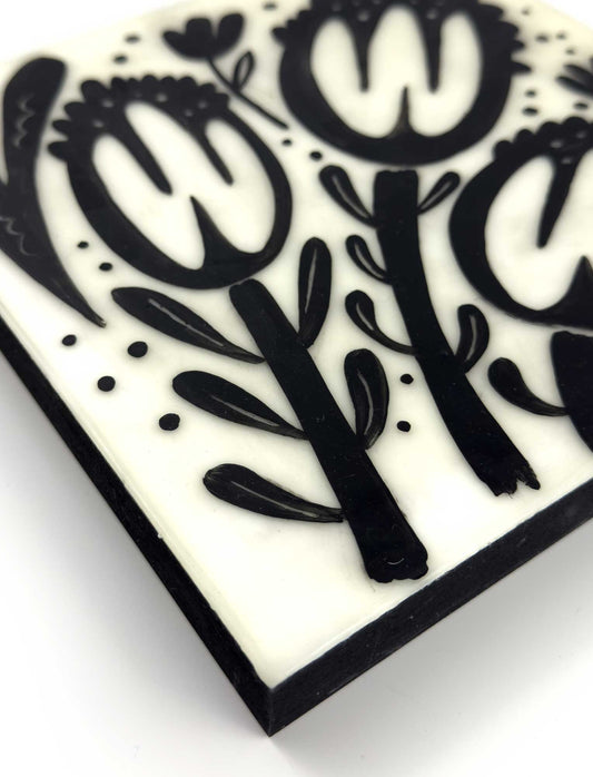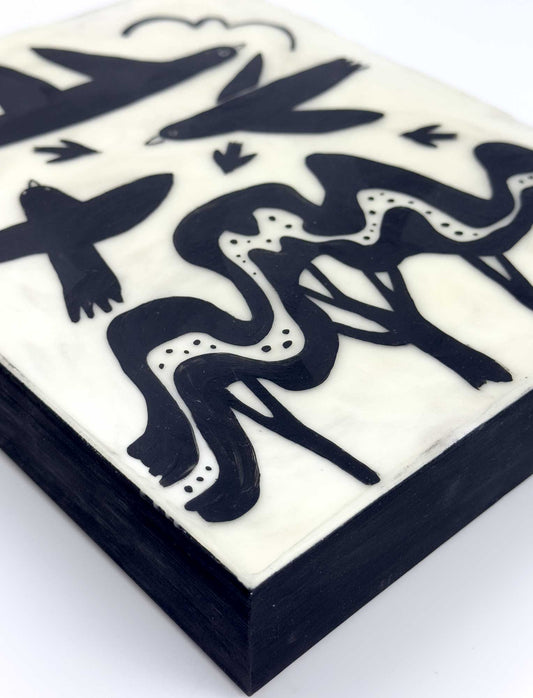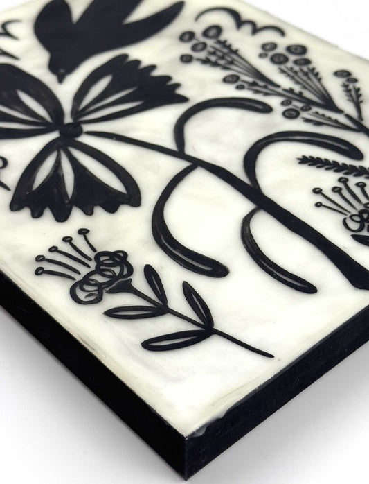 Original, mixed media paintings by Maine artist Deirdre Friebely that combine rich tactile beauty with expressive black and white graphics. Hand-painted with care, these unique artworks bring warmth and depth to any home or office.