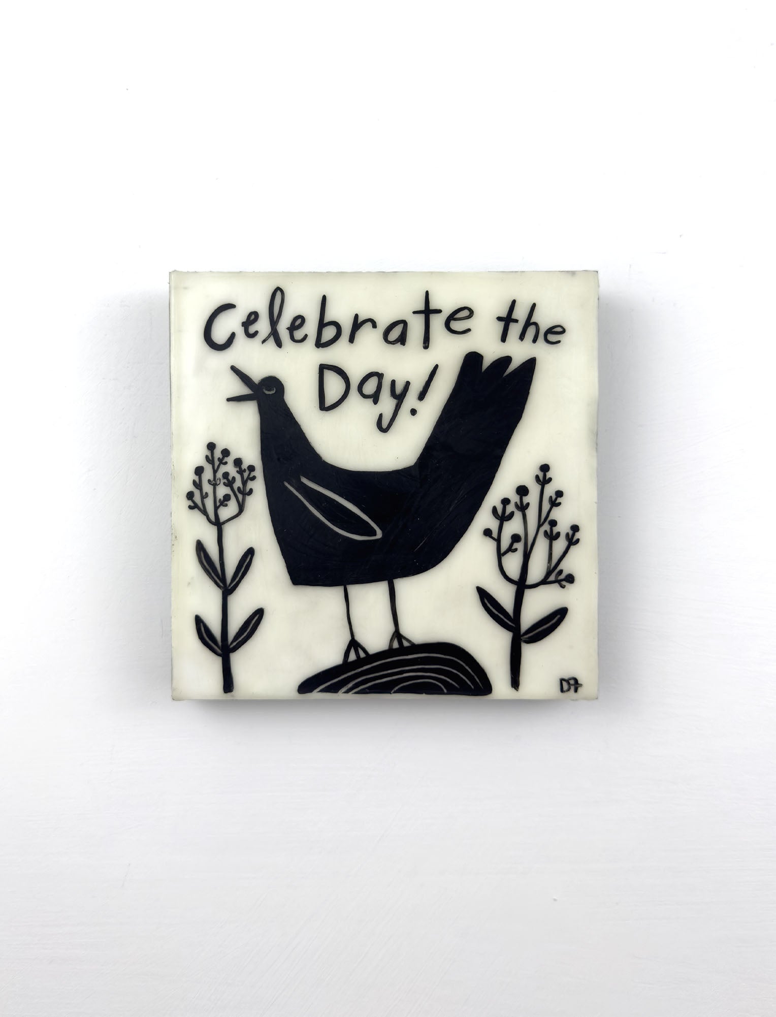 Some kind of chicken. Maybe a duck. Definitely excited. "Celebrate" captures a wildly enthusiastic fowl — mid-crow and fully committed to whatever this day brings. It’s the kind of energy we all wish we had in the morning. Joyful, odd, and ready to go.