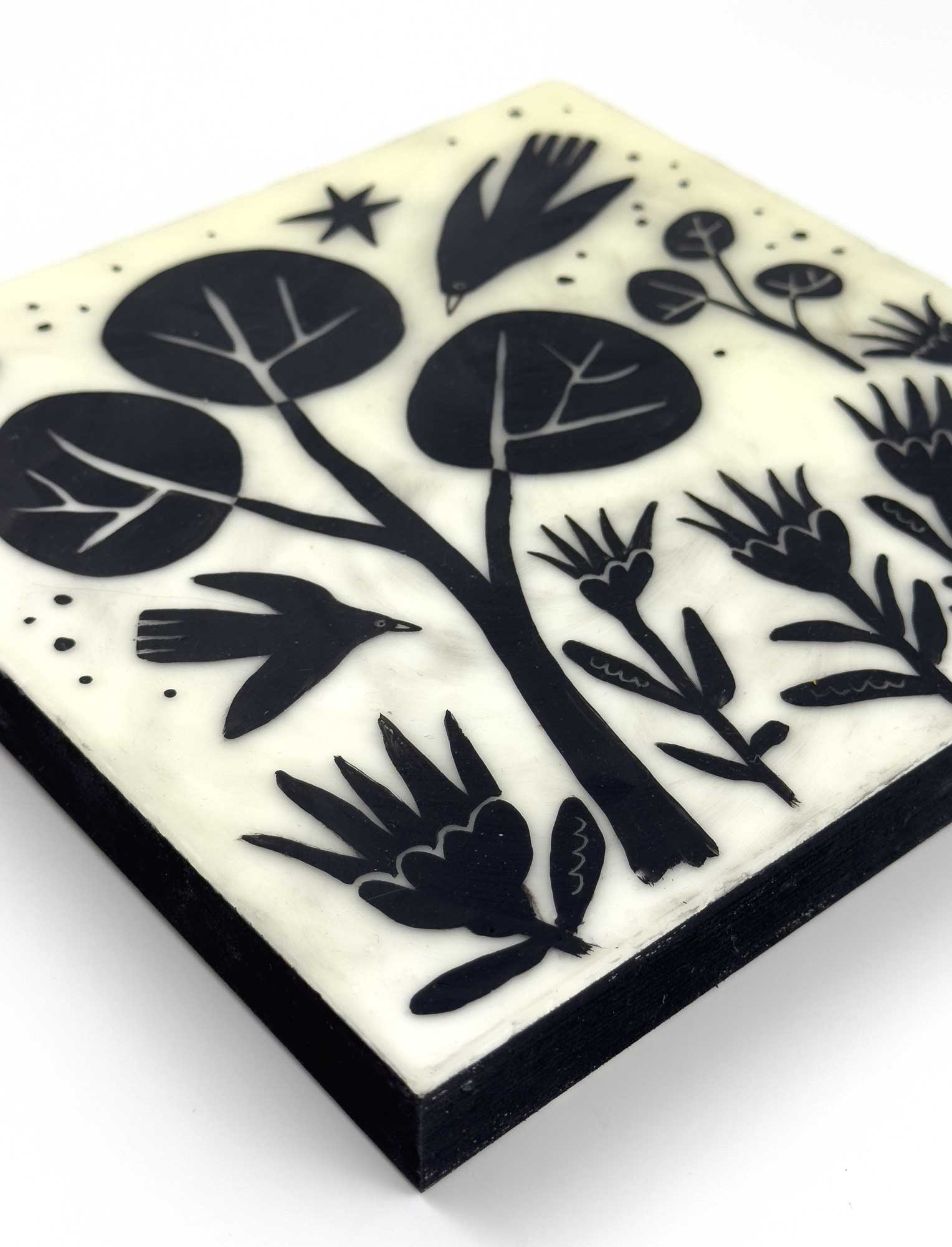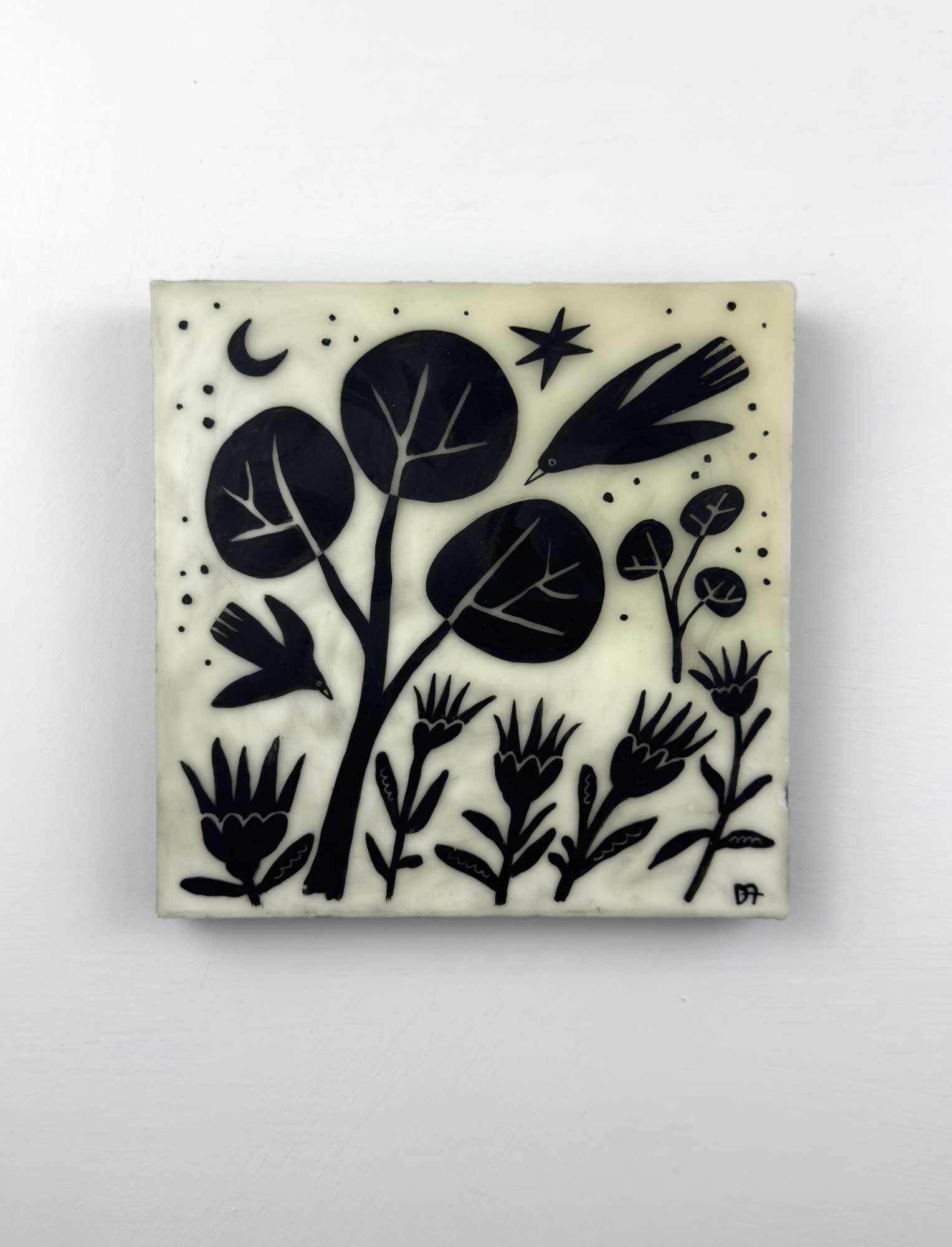 Upon close inspection, you will notice surface imperfections — these are intentional and an essential part of working with encaustic wax. Each mark and texture adds character, making every painting completely unique. I often revisit favorite themes and motifs in my work, but no two pieces are ever exactly alike.