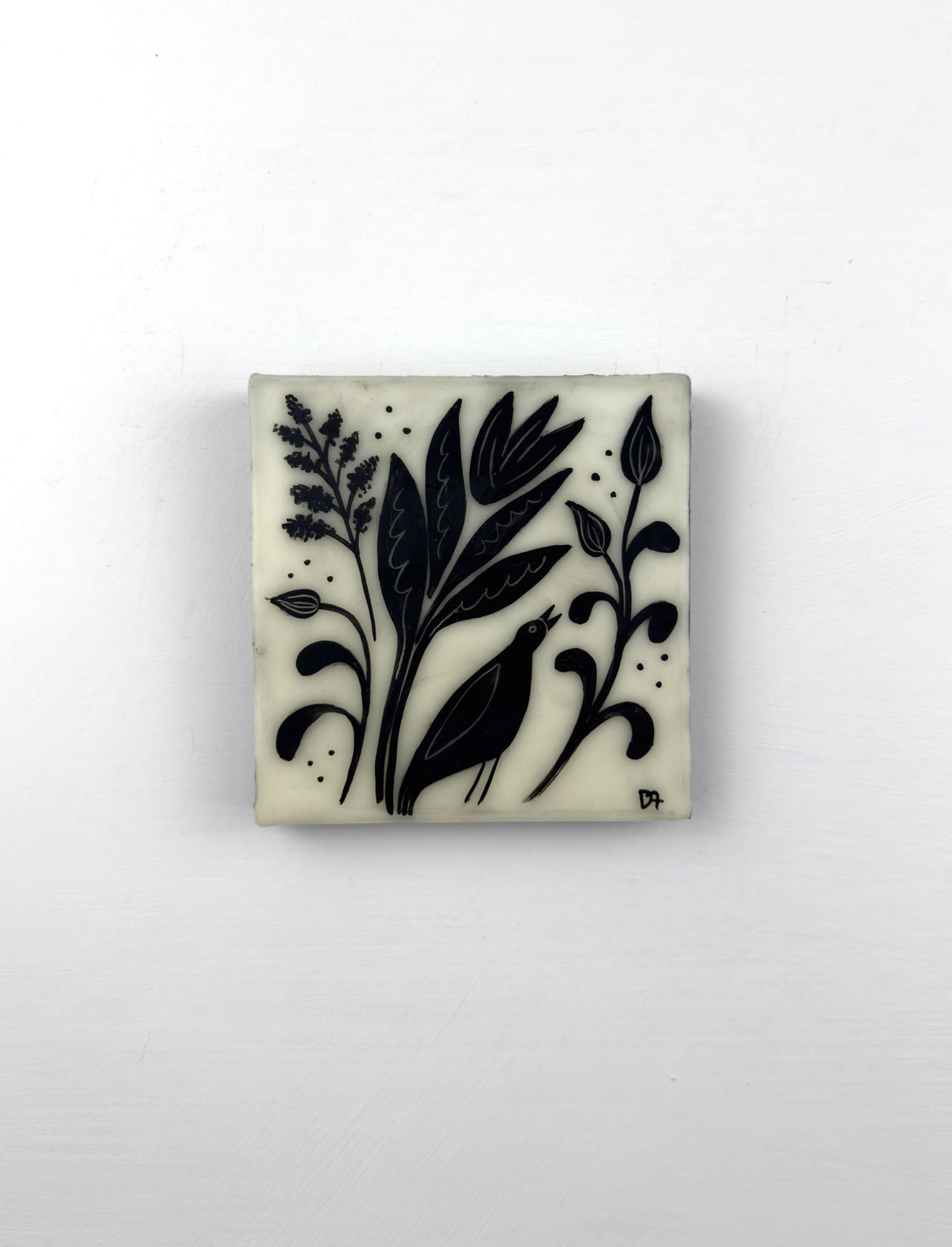 Upon close inspection, you will notice surface imperfections — these are intentional and an essential part of working with encaustic wax. Each mark and texture adds character, making every painting completely unique. I often revisit favorite themes and motifs in my work, but no two pieces are ever exactly alike.