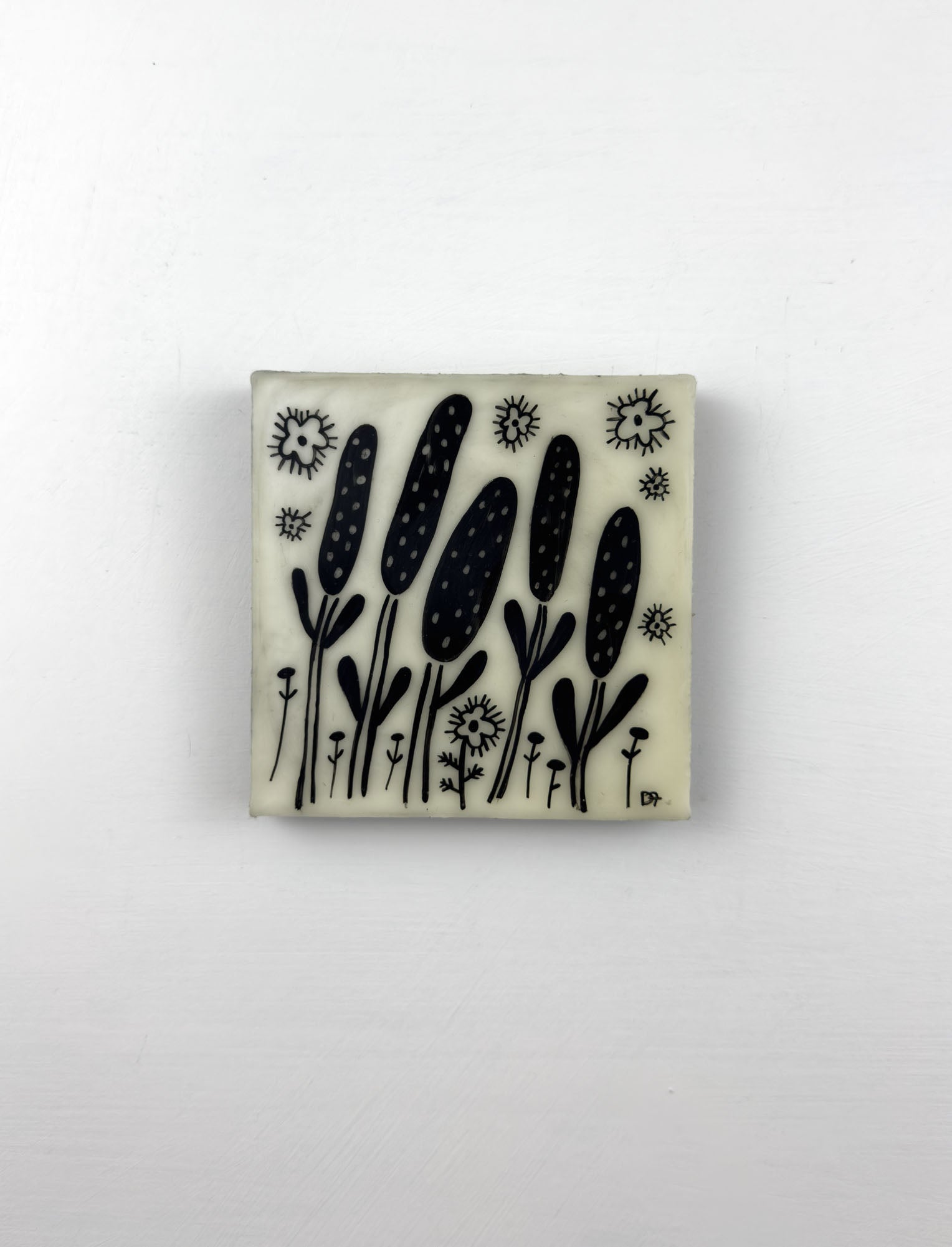Upon close inspection, you will notice surface imperfections — these are intentional and an essential part of working with encaustic wax. Each mark and texture adds character, making every painting completely unique. I often revisit favorite themes and motifs in my work, but no two pieces are ever exactly alike.